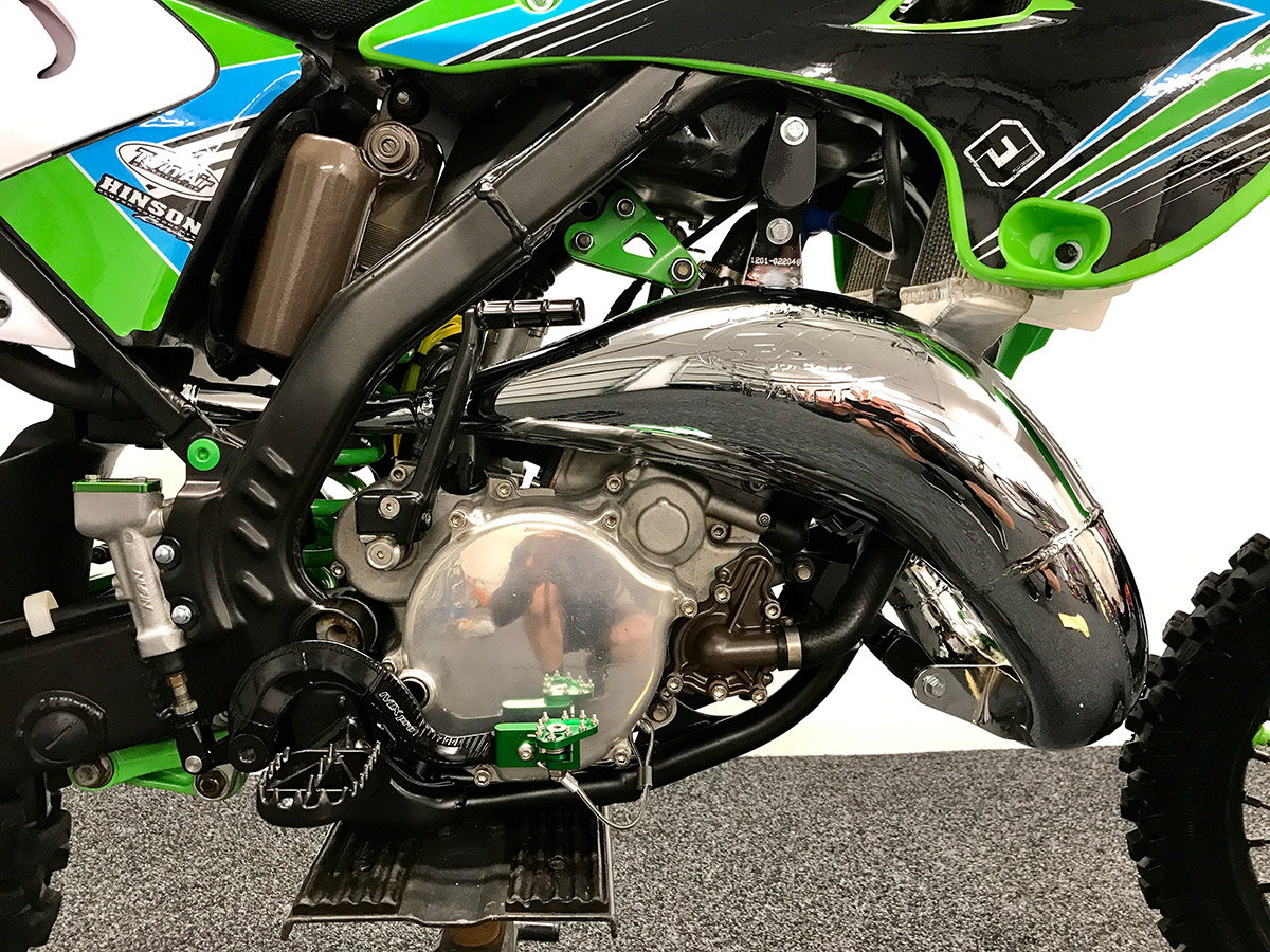 We re-conditioned this pit bike to its former glory by stripping it apart bit by bit and powdercoating those elements to make it look like new again.